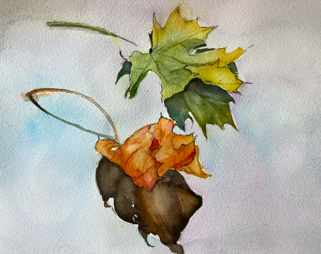 Here are some examples of our virtual class projects in watercolor, where we’ve explored composition, layout, color density/tonal values and techniques.