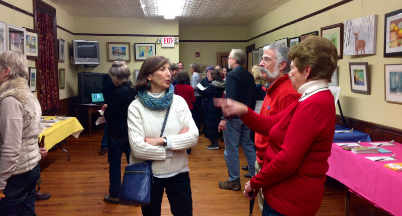 Despite the record breaking snow blanketing the area, a hearty group of artists, art lovers, Sudbury Valley Trustees supporters and local neighbors enjoyed the art of Cecilia and her talented artists at the benefit Art Show February 6-8. The theme of the show highlighted the landscapes, flora and fauna of the Tri-Town (Berlin, Boylston, Northborough) area.
